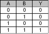 Rangkaian AND dinyatakan sebagai Y=A*B, Gerbang AND digunakan untuk menghasilkan logika 1 jika semua masukan mempunyai logika 1, jika tidak akan dihasilkan logika 0tabel kebenarannya :