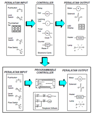 Prinsipnya: INPUT - kemudian diolah kontroller (bisa PLC) - yang akan menghasilkan OUTPUT yang kita inginkan.