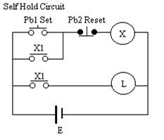 Dikenal juga rangkain pengunci, terutama saat kita merancang dengan menggunakan Push Button. Biasanya menggunakan Relay tambahan.
